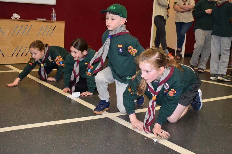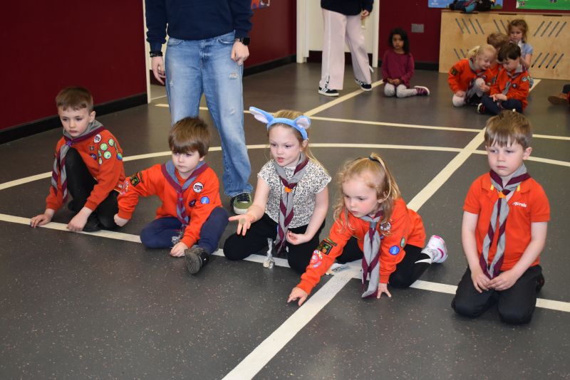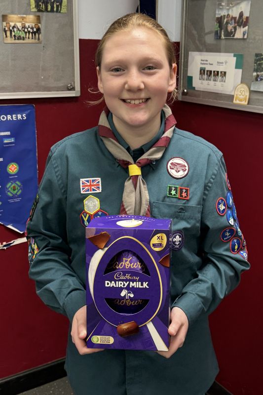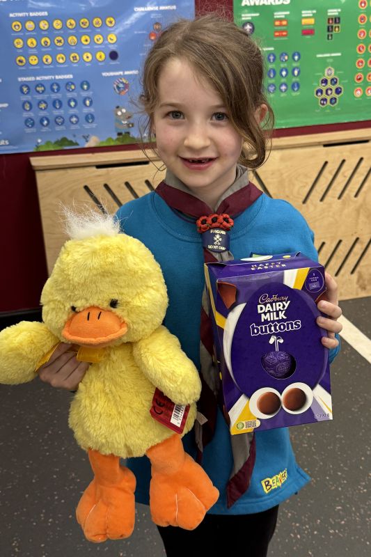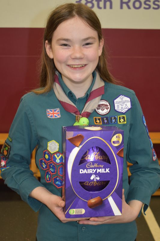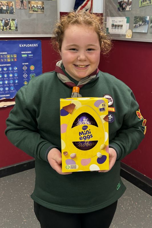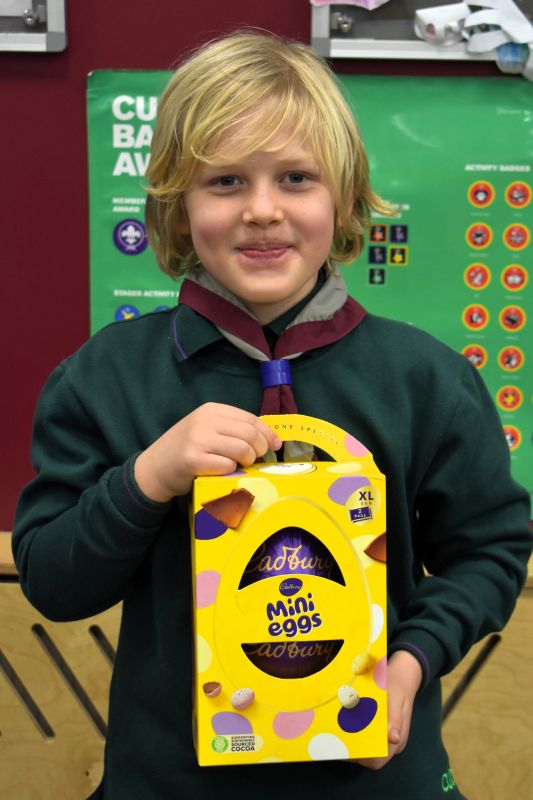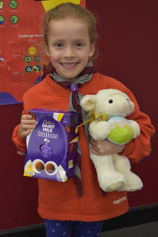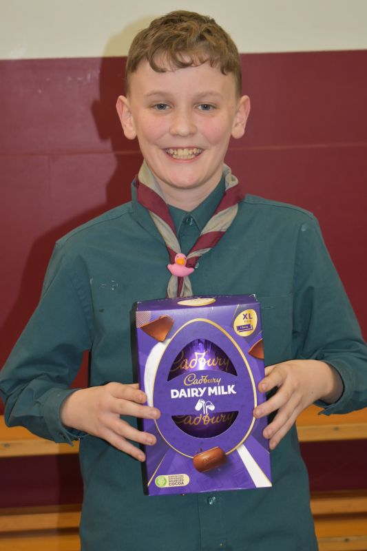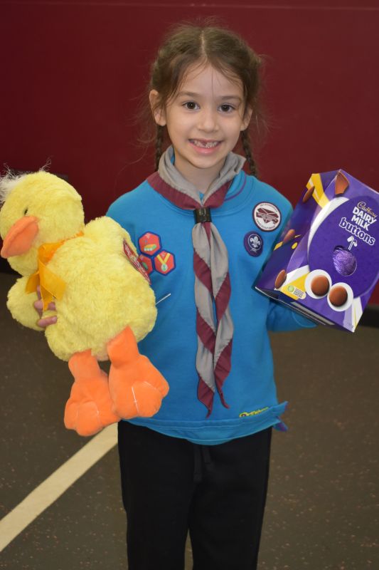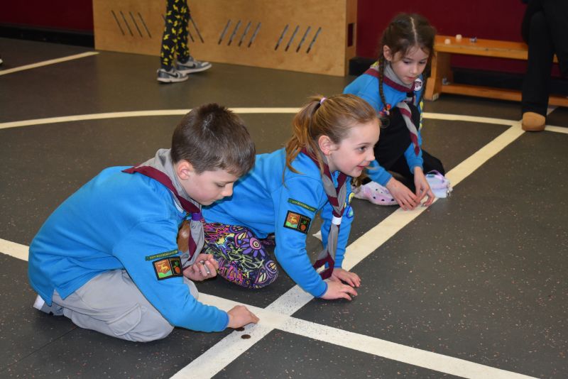 Squirrels, Beavers, Cubs and Scouts took it in turn to roll or slide their 10 pence pieces towards the chocolate egg, the eventual winner being determined by the person with the closest coin to the egg.